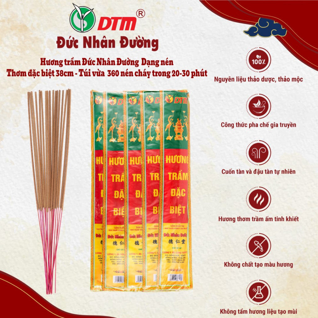 💥 Tên sản phẩm: Hương trầm Đức Nhân Đường Dạng nén, đậu tàn Thơm đặc biệt 38cm- Bịch 10 thẻ (36 nén/thẻ) cháy trong 20-30 phút 💥